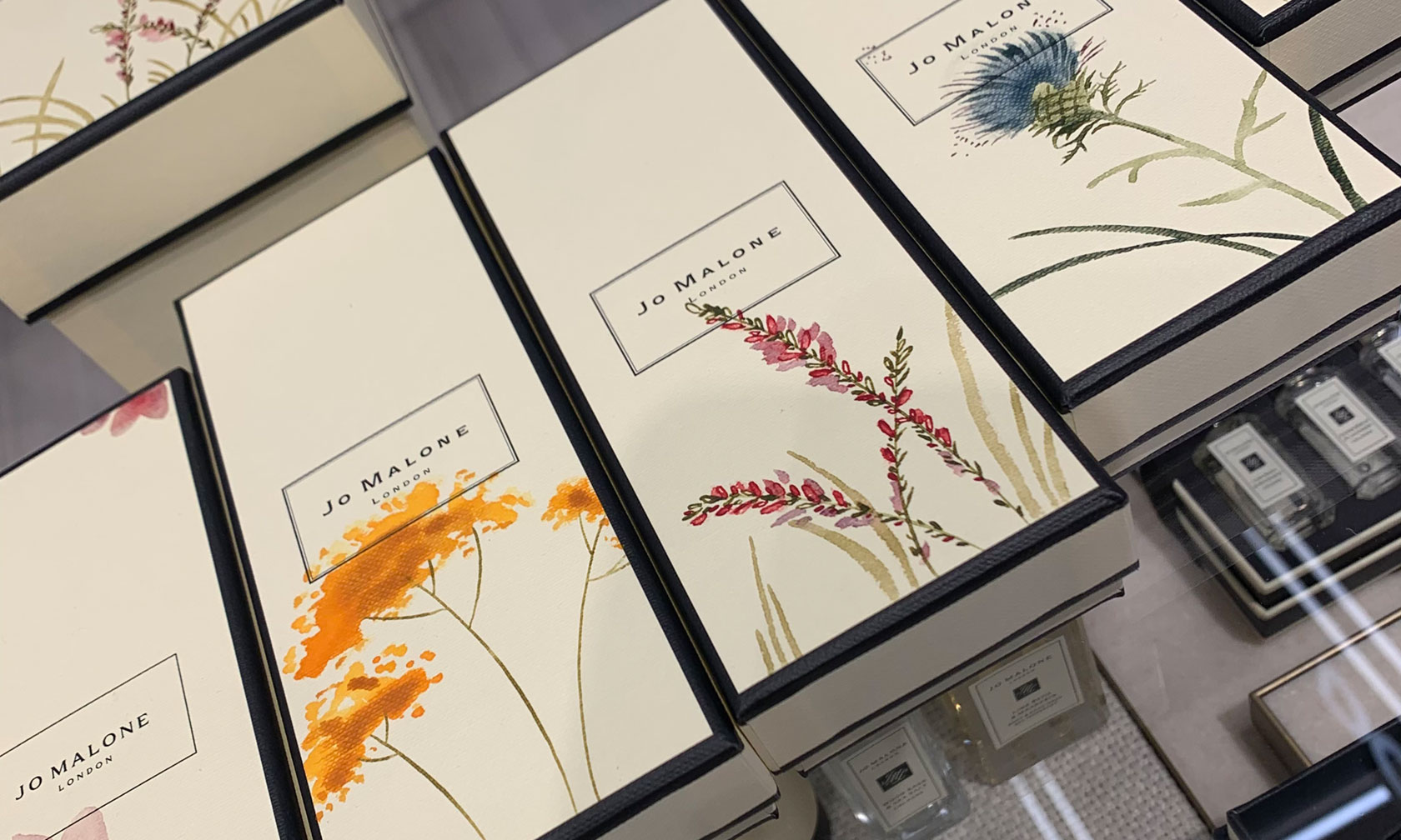Produktlaunch für Jo Malone London im KaDeWe – jede Box habe ich individuell vor Ort bemalt.