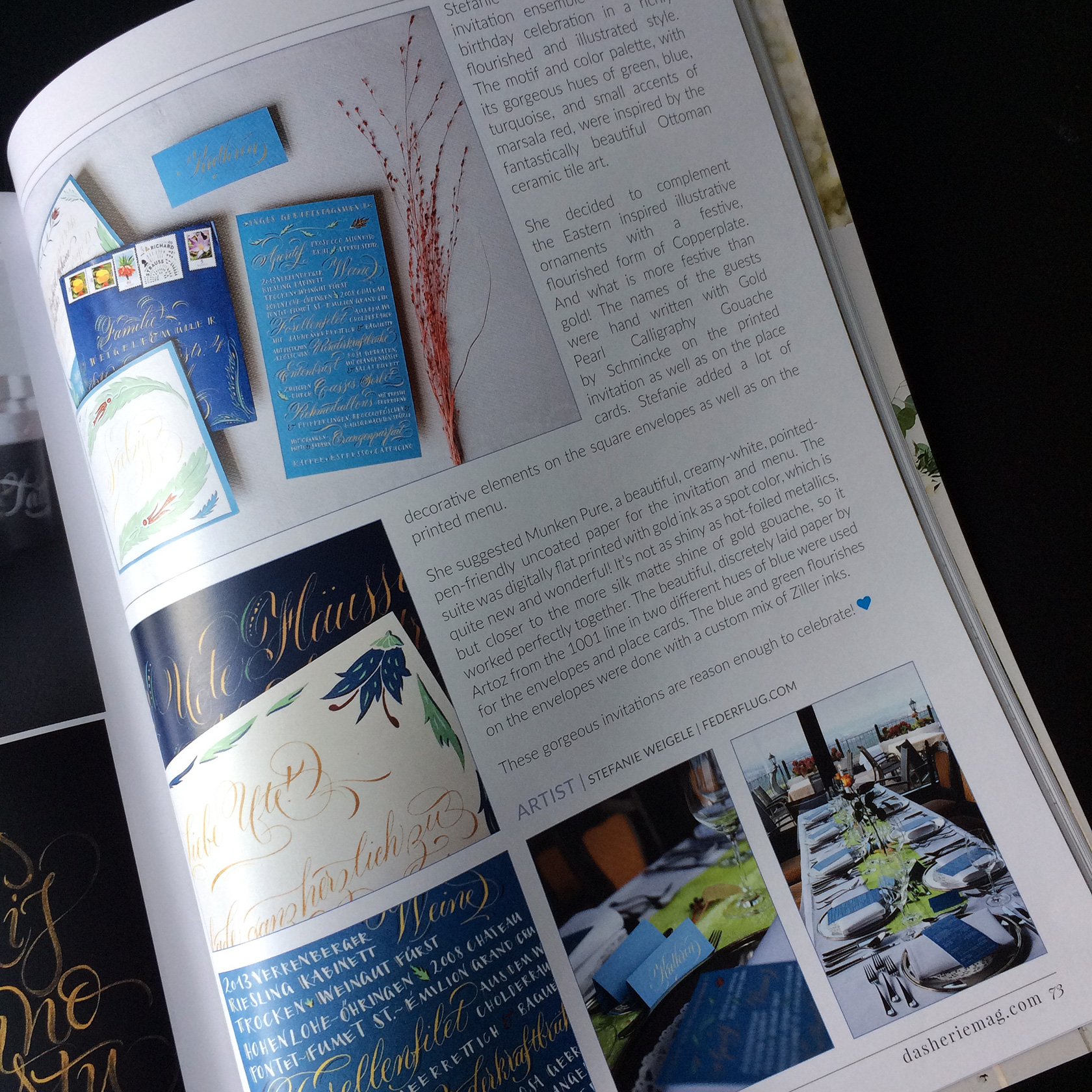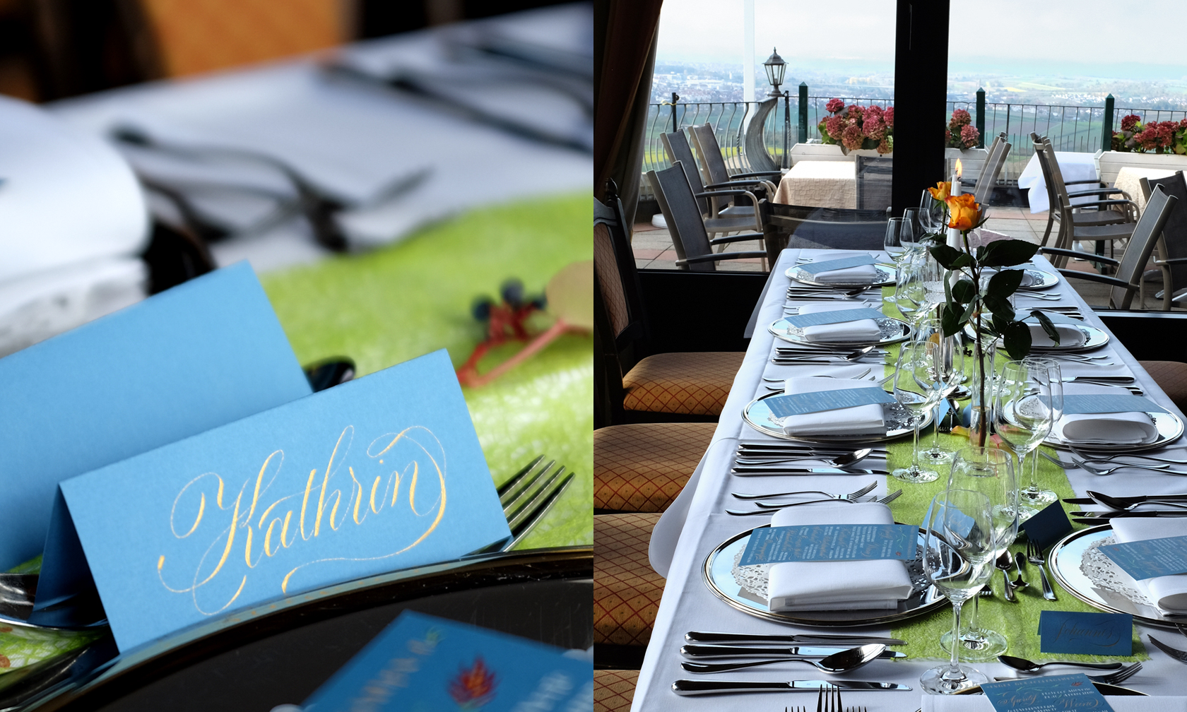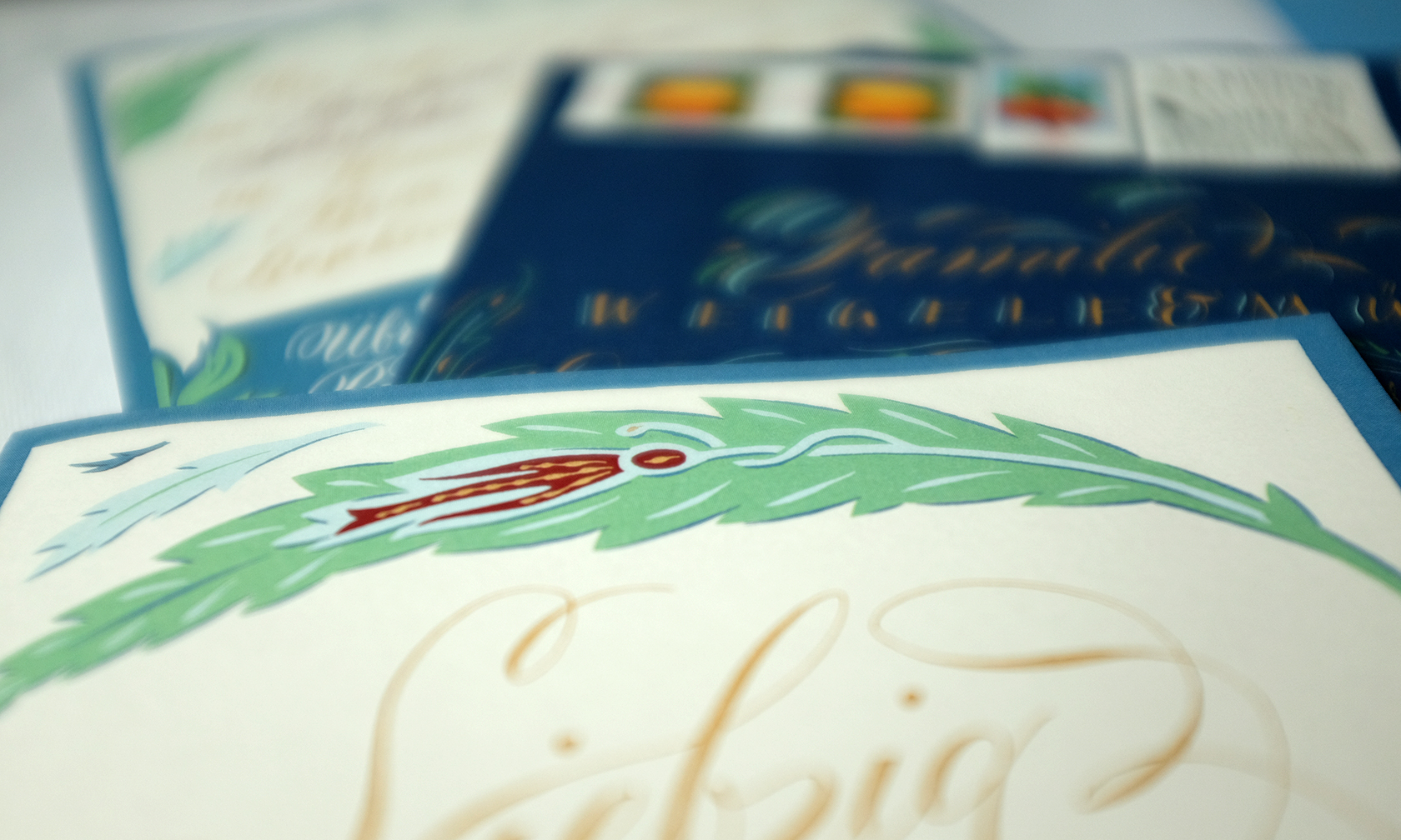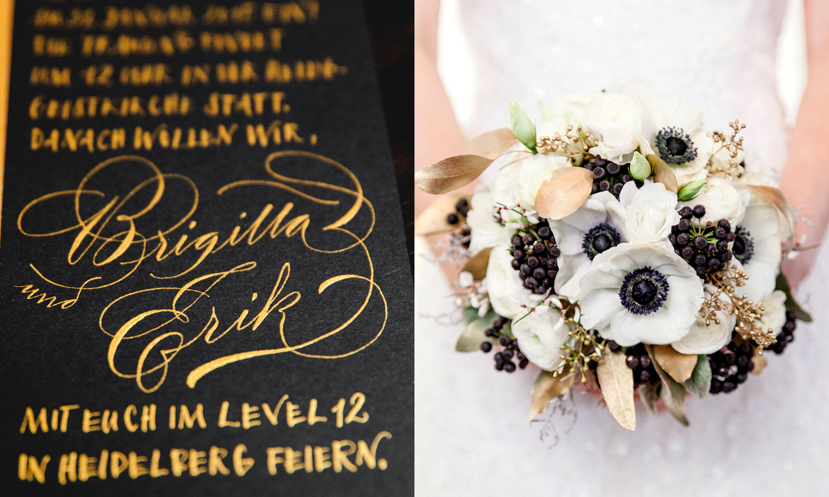 Ich gestalte Ihre Fest-Papeterie entweder als Gesamtpaket von der Beratung bis hin zur drucktechnischen Umsetzung, oder nur in einzelnen Bausteinen wie zum Beispiel mit auf Ihre Einladung und Ihr Hochzeitsthema abgestimmten Tischkarten oder Gastgeschenkanhängern – gern arbeite ich mit Ihrem Hochzeitsplaner zusammen. Auch die in Deutschland noch eher unübliche professionelle Beschriftung der Umschläge, die in Amerika zu jeder stilgerechten Hochzeit gehört, kann ich übernehmen.